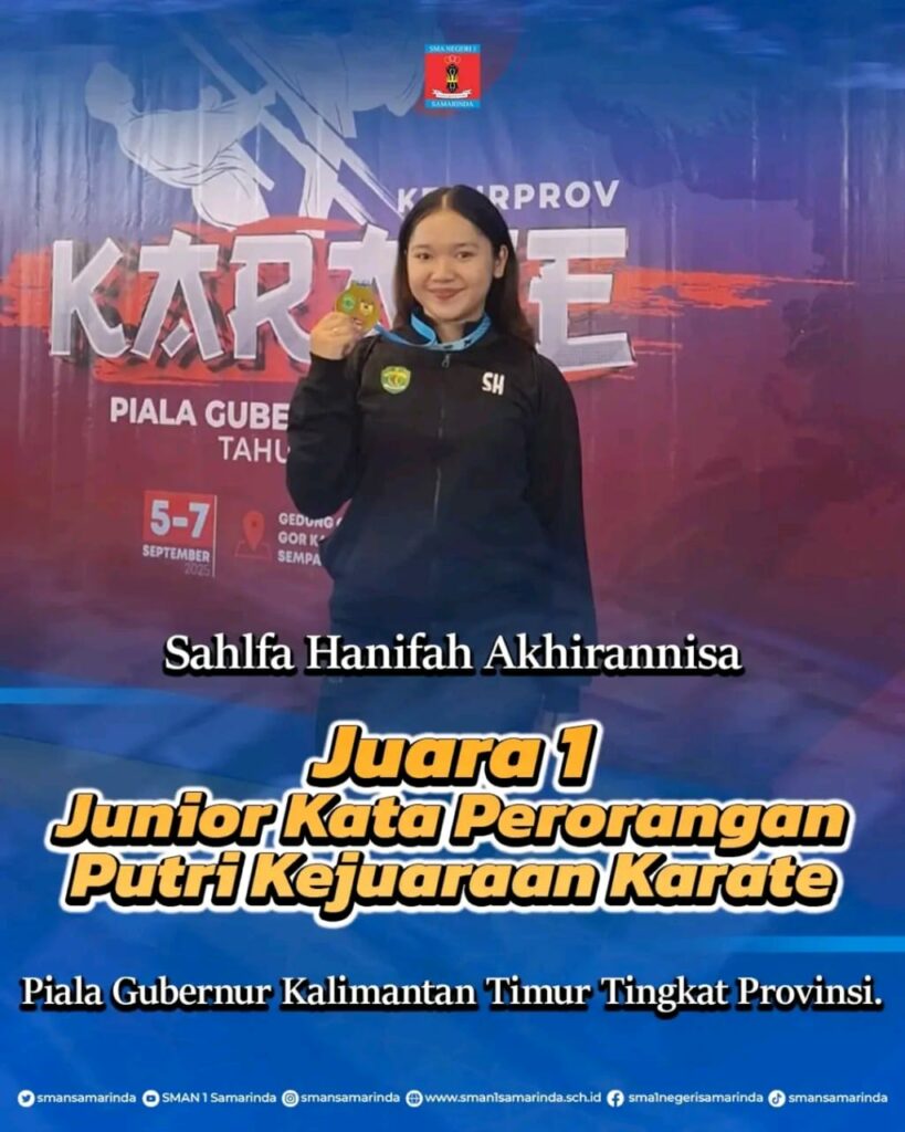 Siswa SMA Negeri 1 Samarinda kembali menorehkan prestasi membanggakan di berbagai ajang olahraga tingkat provinsi dan nasional. Berbagai cabang olahraga seperti karate, pencak silat, dan anggar menjadi bukti semangat juang serta dedikasi tinggi para siswa dalam mengharumkan nama sekolah. Prestasi tersebut menunjukkan keberhasilan SMA Negeri 1 Samarinda dalam membina karakter disiplin, sportivitas, dan kerja keras melalui kegiatan ekstrakurikuler olahraga.