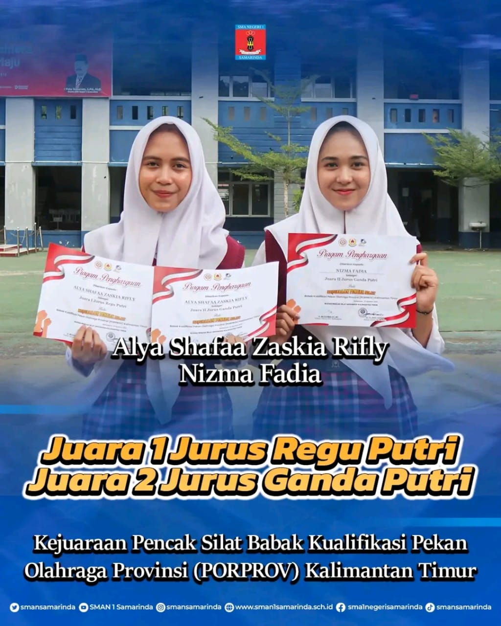 Prestasi Cemerlang SMAN 1 Samarinda di PORPROV Kaltim: Juara 1 dan 2 Pencak Silat Putri